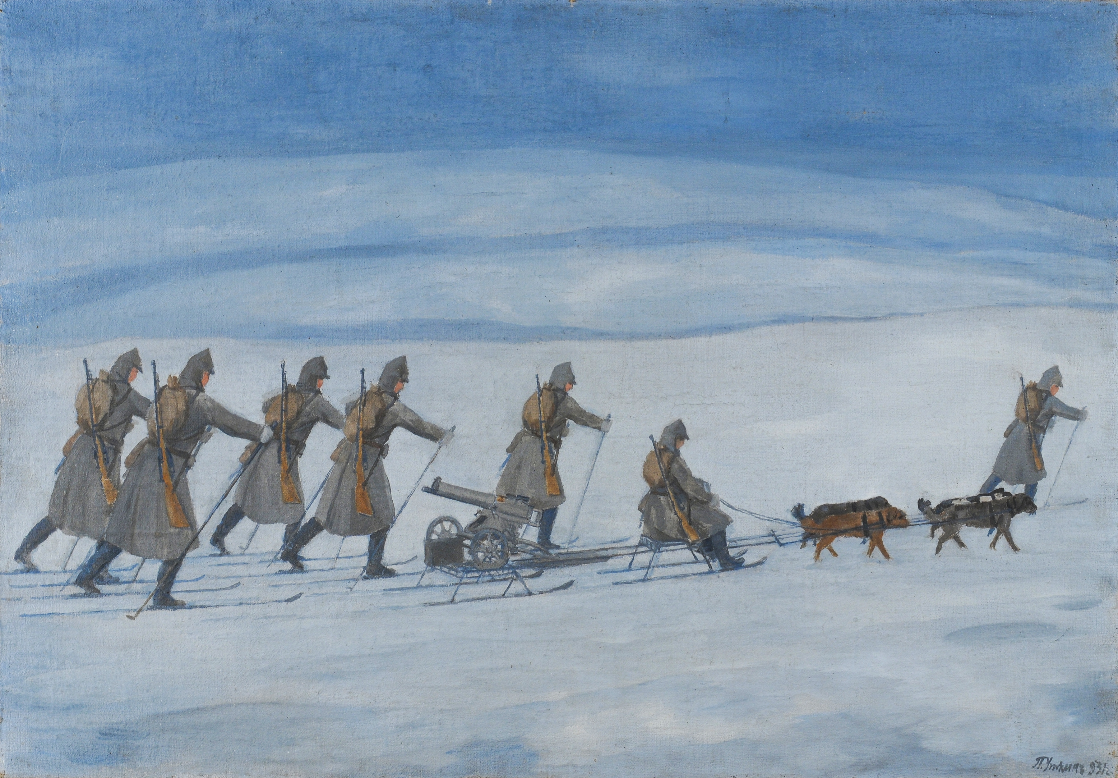 Уткин Петр Саввич. Красноармейцы-лыжники. 1931. Холст, масло