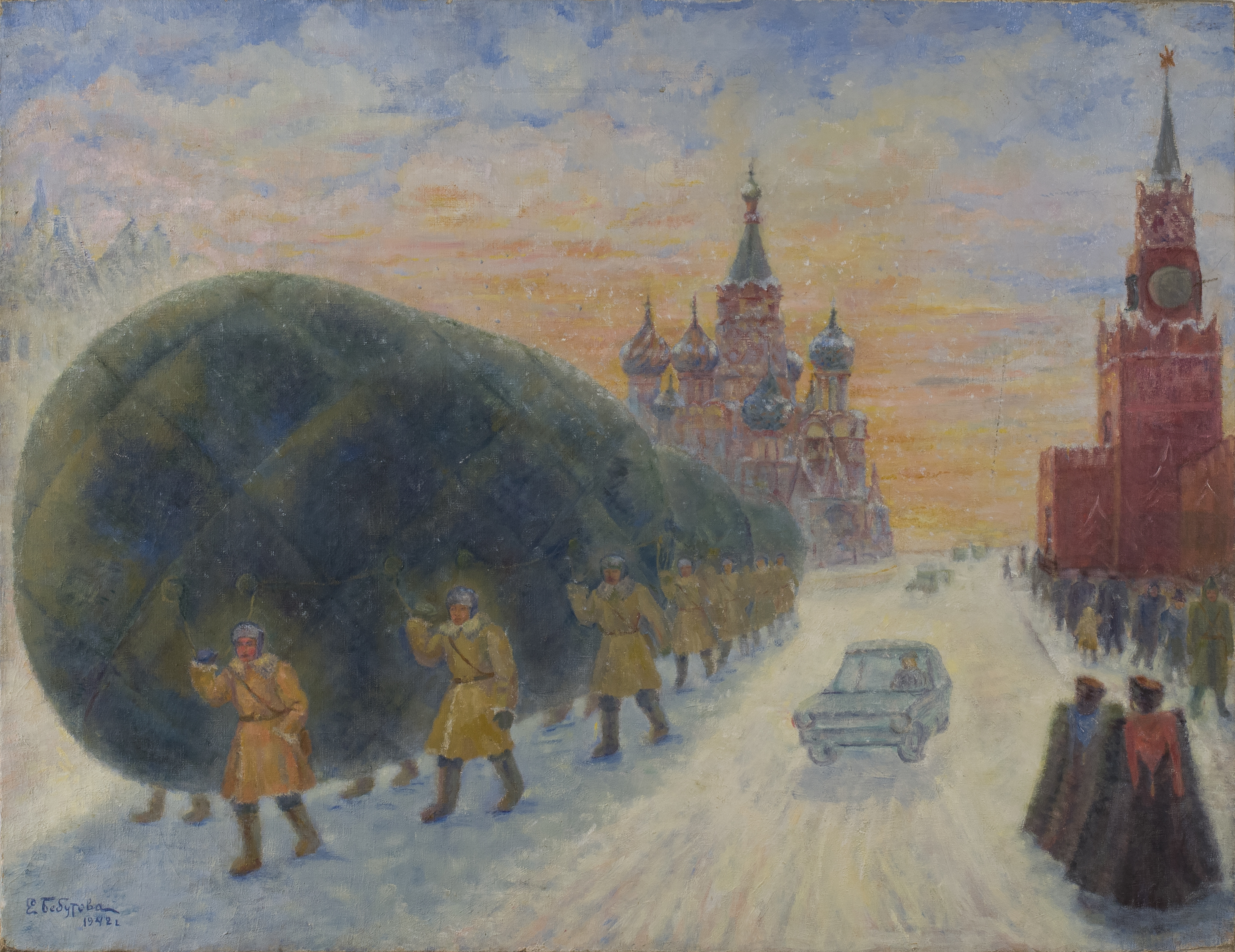 Бебутова (Кузнецова) Елена Михайловна. Аэростаты заграждения. 1942. Холст, масло