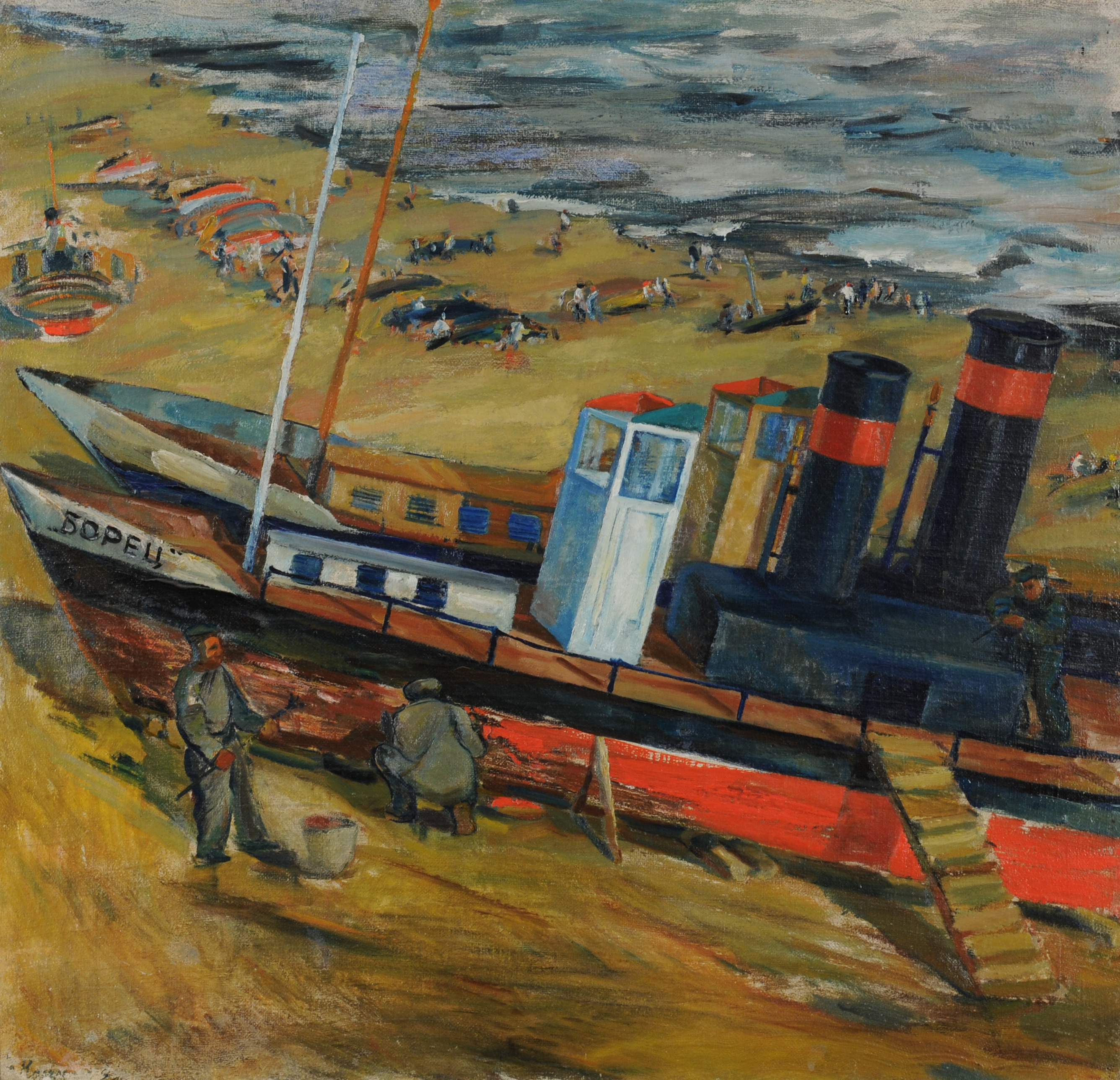 Кашкин Владимир Иванович. Ремонт буксирных пароходов. 1933. Холст, масло