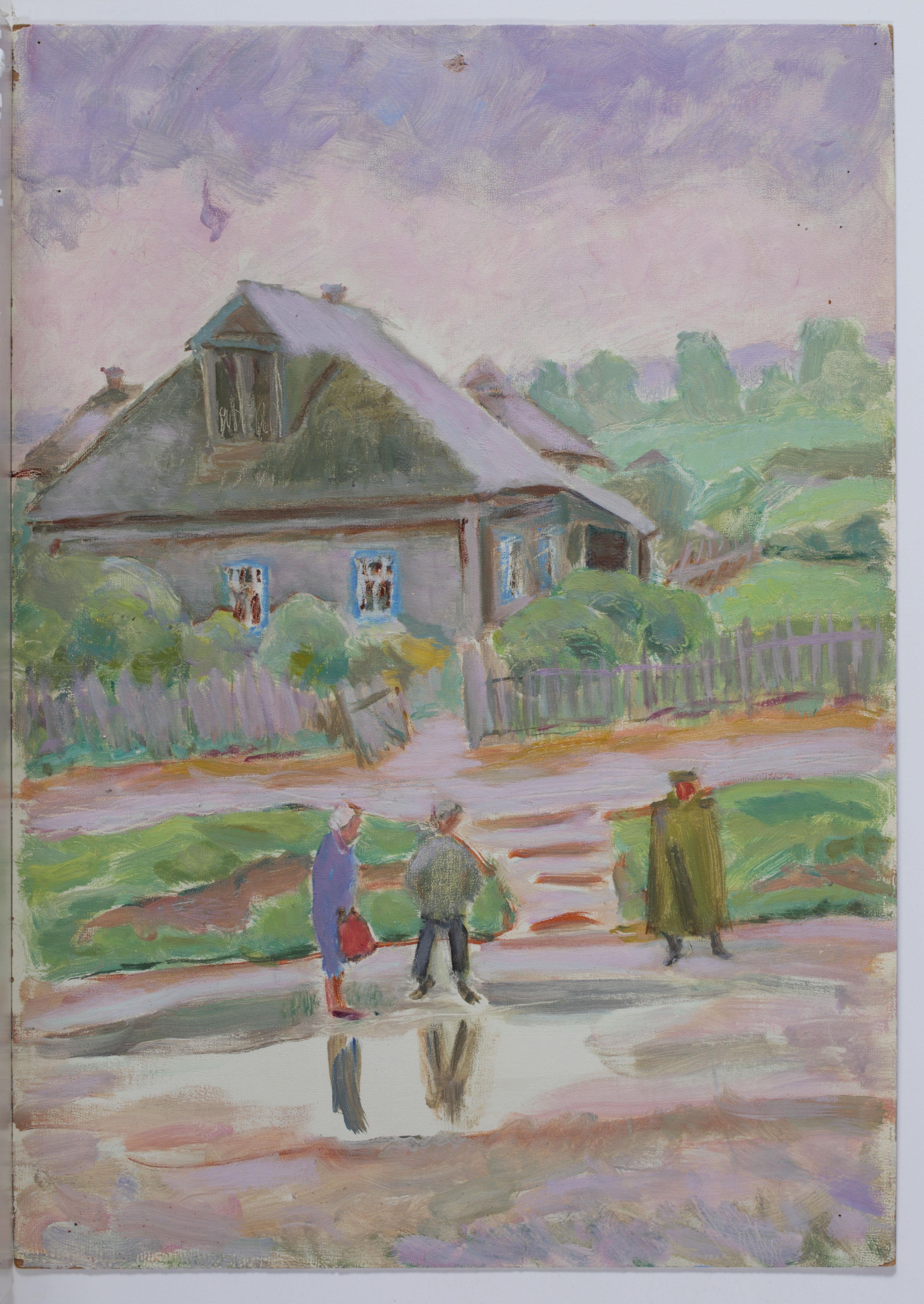 Матвеева-Мостова Зоя Яковлевна. Деревенская улица после дождя. 1962–1963. Картон, масло