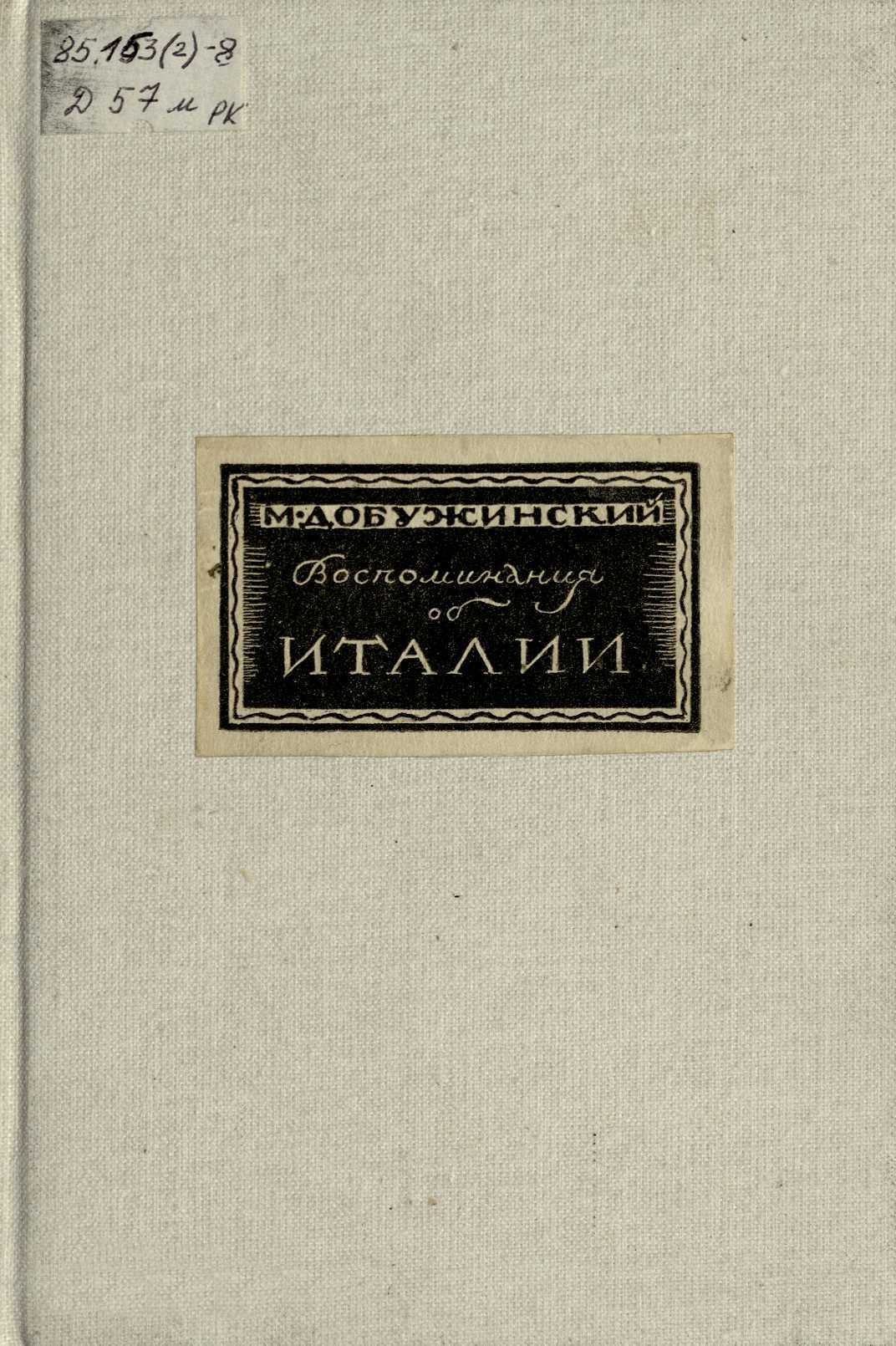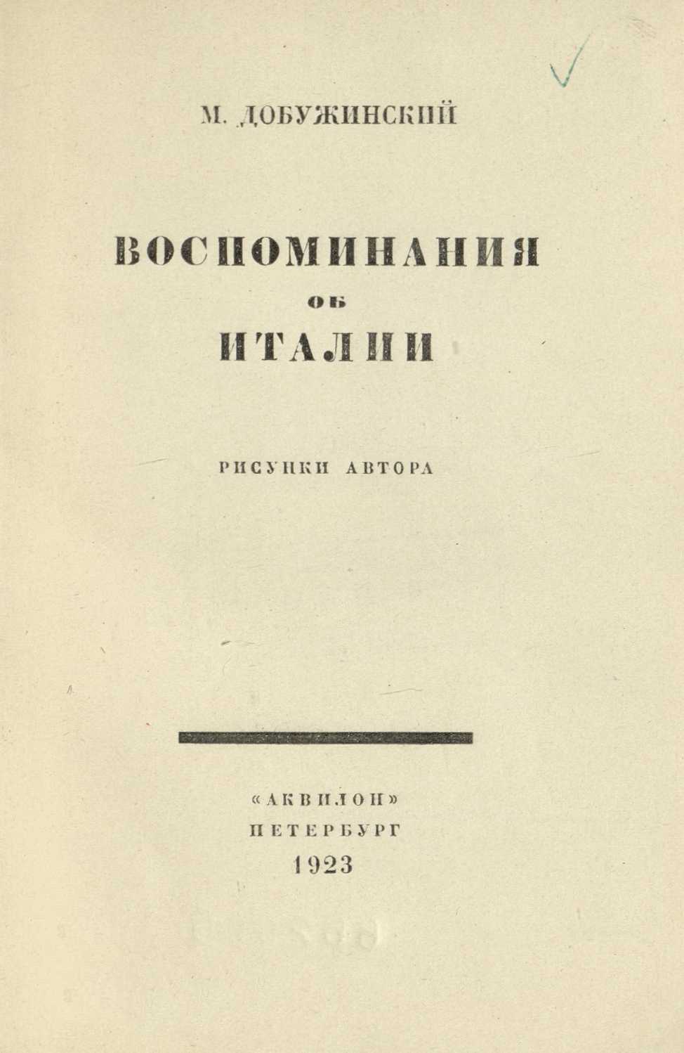 Добужинский М. Воспоминания об Италии. — Петербург, 1923Воспоминания об Италии / М. Добужинский ; Рисунки автора. — Петербург : Аквилон, 1923. — 67, [2] с. : ил.[Вместо предисловия]