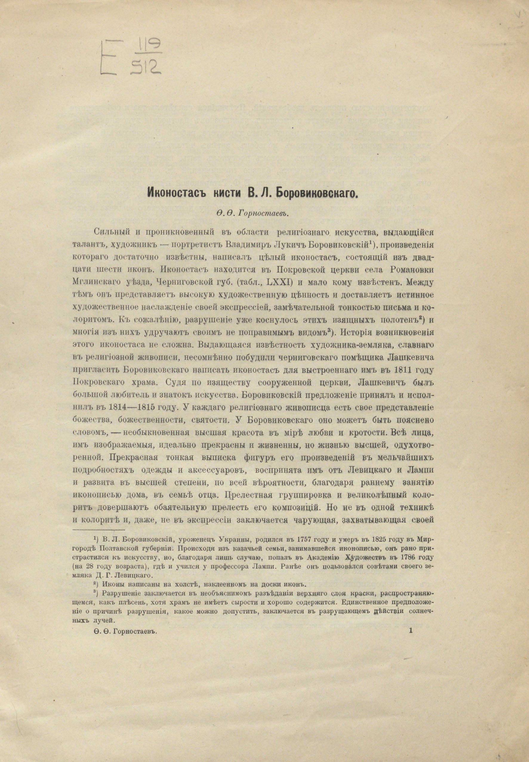 Горностаев Ф. Ф. Иконостас кисти В. Л. Боровиковского. — Москва, 1911Иконостас кисти В. Л. Боровиковского / Ф. Ф. Горностаев. — Москва : Типография Г. Лисснера и Д. Собко, 1911. — 6 с., [10] л. ил., портр.Иконостасъ кисти В. Л. Боровиковскаго / Ѳ. Ѳ. Горностаевъ. — Москва : Типографія Г. Лисснера и Д. Собко, 1911. — 6 с., [10] л. ил., портр.[Полный текст издания]Иконостас кисти В. Л. Боровиковского.Ф. Ф. Горностаев.