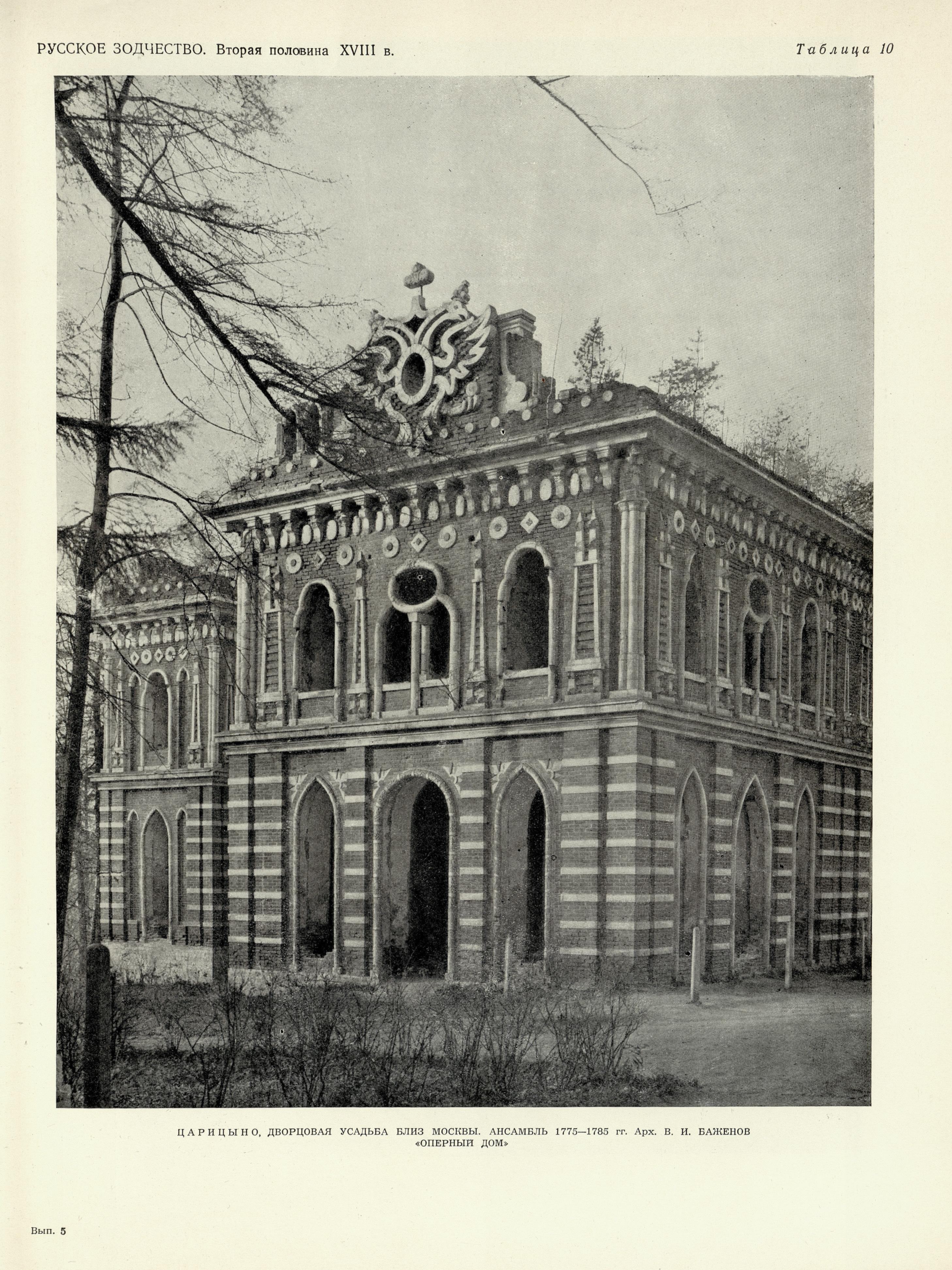 Таблица 10. Царицыно, дворцовая усадьба близ Москвы. Ансамбль 1775—1785 гг. Архитектор В. И. Баженов. Оперный дом (ИИТ)