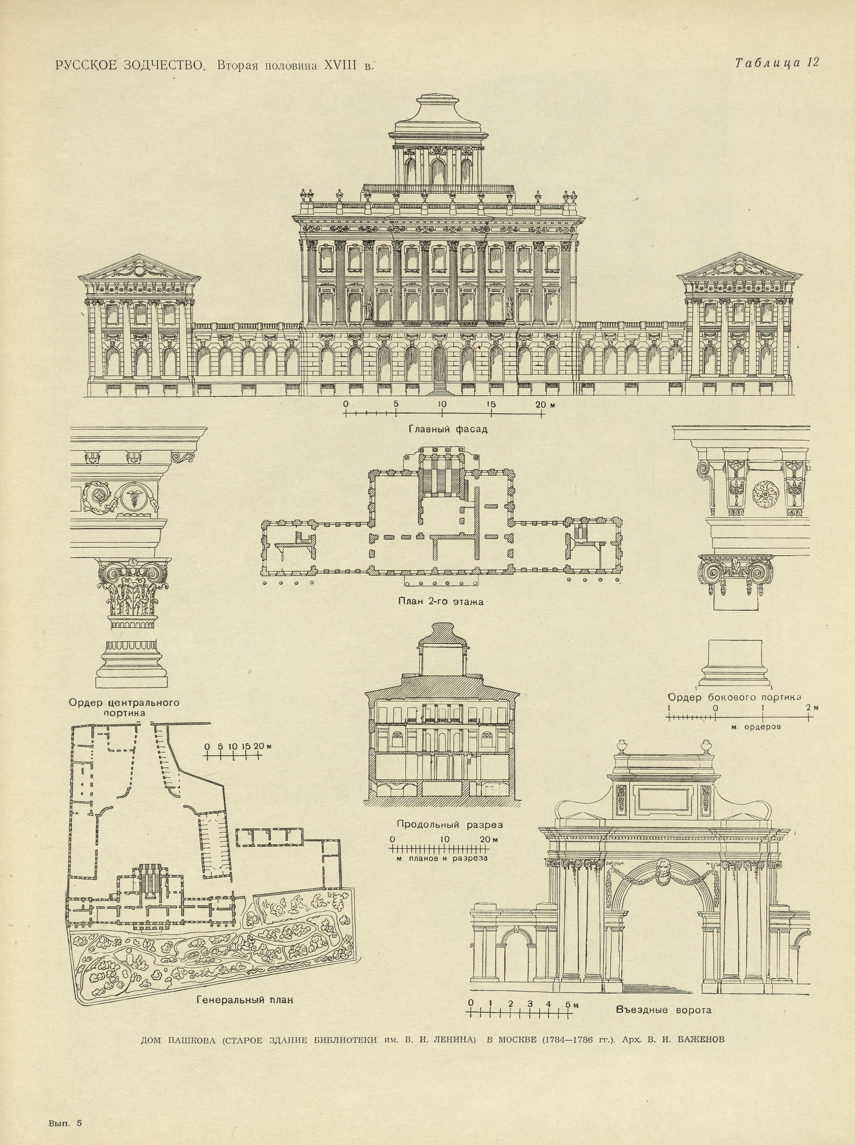 Таблица 12*. Дом Пашкова (ныне старое здание Библиотеки имени В. И. Ленина) в Москве (1784—1786 гг.). Архитектор В. И. Баженов.