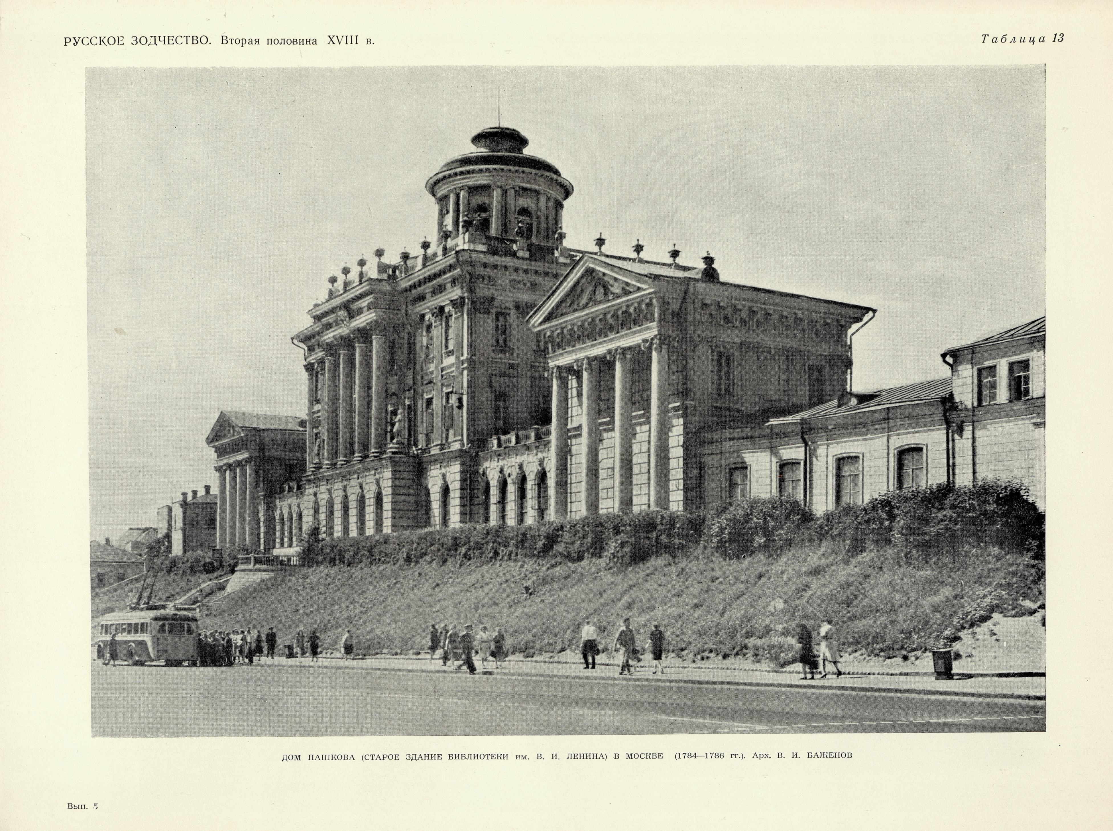 Таблица 13. Дом Пашкова (ныне старое здание библиотеки имени В. И. Ленина) в Москве (1784—1786 гг.). Архитектор В. И. Баженов. Общий вид (МАА)