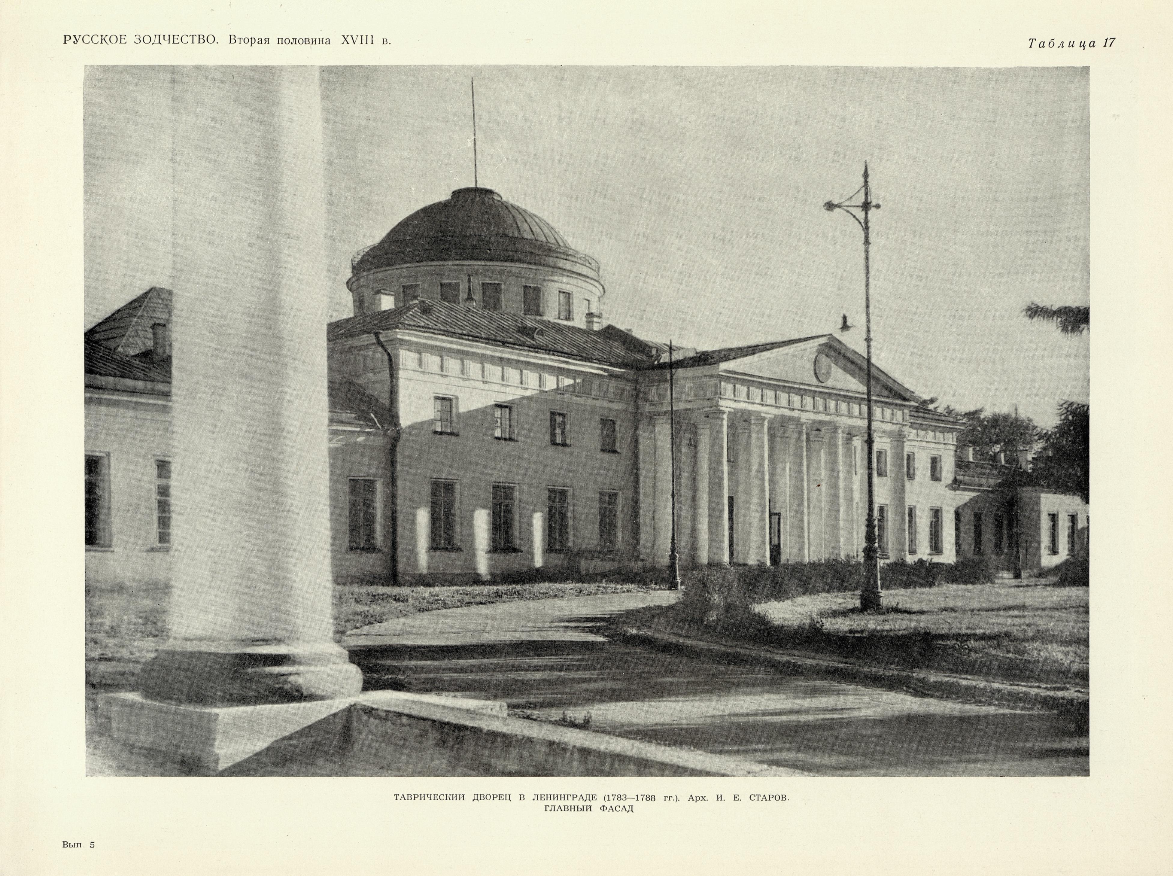 Таблица 17. Таврический дворец в Ленинграде (1783—1788 гг.). Архитектор И. Е. Старов. Главный фасад (МРА)