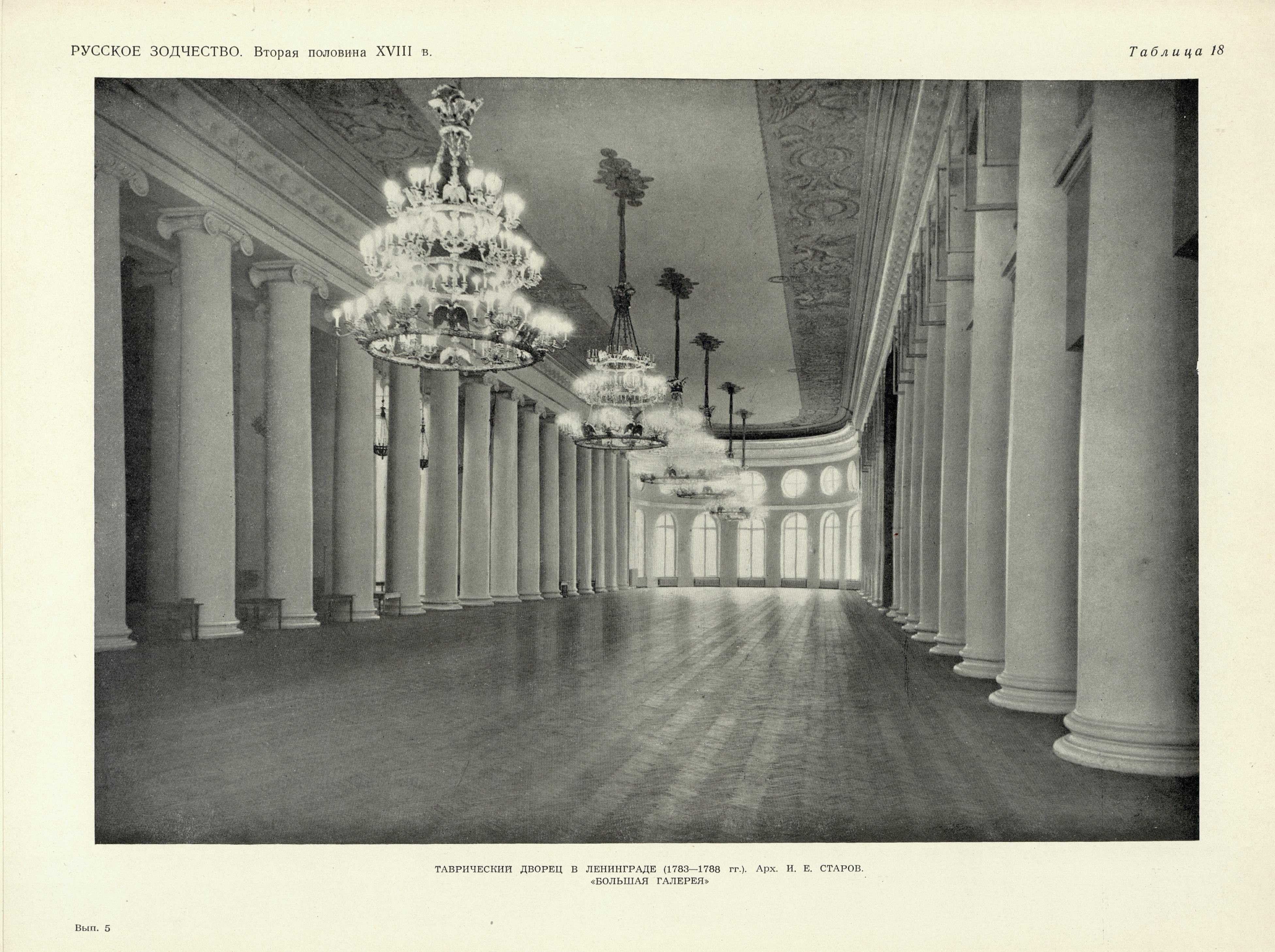 Таблица 18. Таврический дворец в Ленинграде (1783—1788 гг.) Архитектор И. Е. Старов. Большая галерея (УОП)