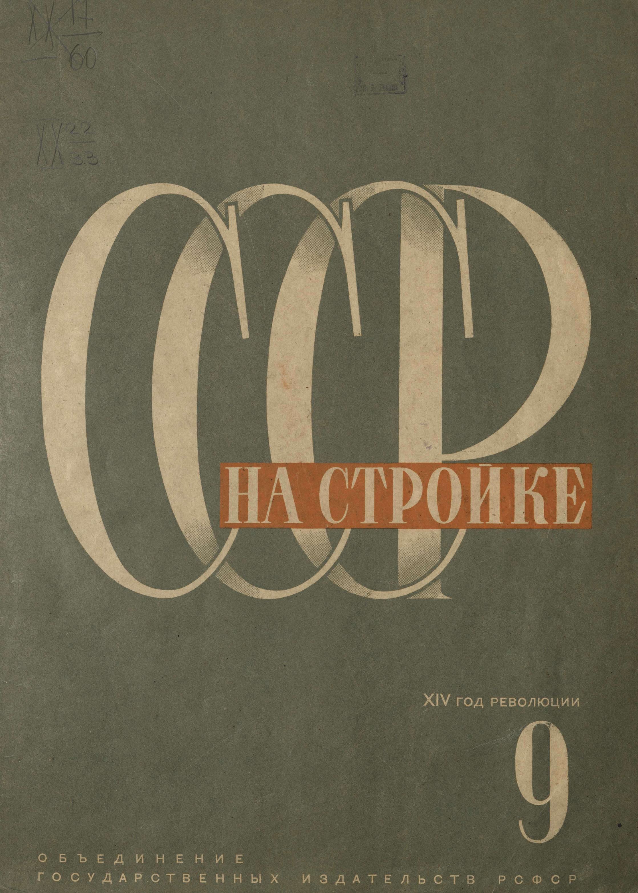 СССР на стройке : Ежемесячный журнал нового типа. — 1930. — № 9 / Редакционная коллегия: М. Горький, А. 3. Гольцман, Ш. М. Дволайцкий, Мих. Кольцов, Ф. М. Конар, Г. Л. Пятаков (ответственный редактор), С. Б. Урицкий, А. Б. Халатов.