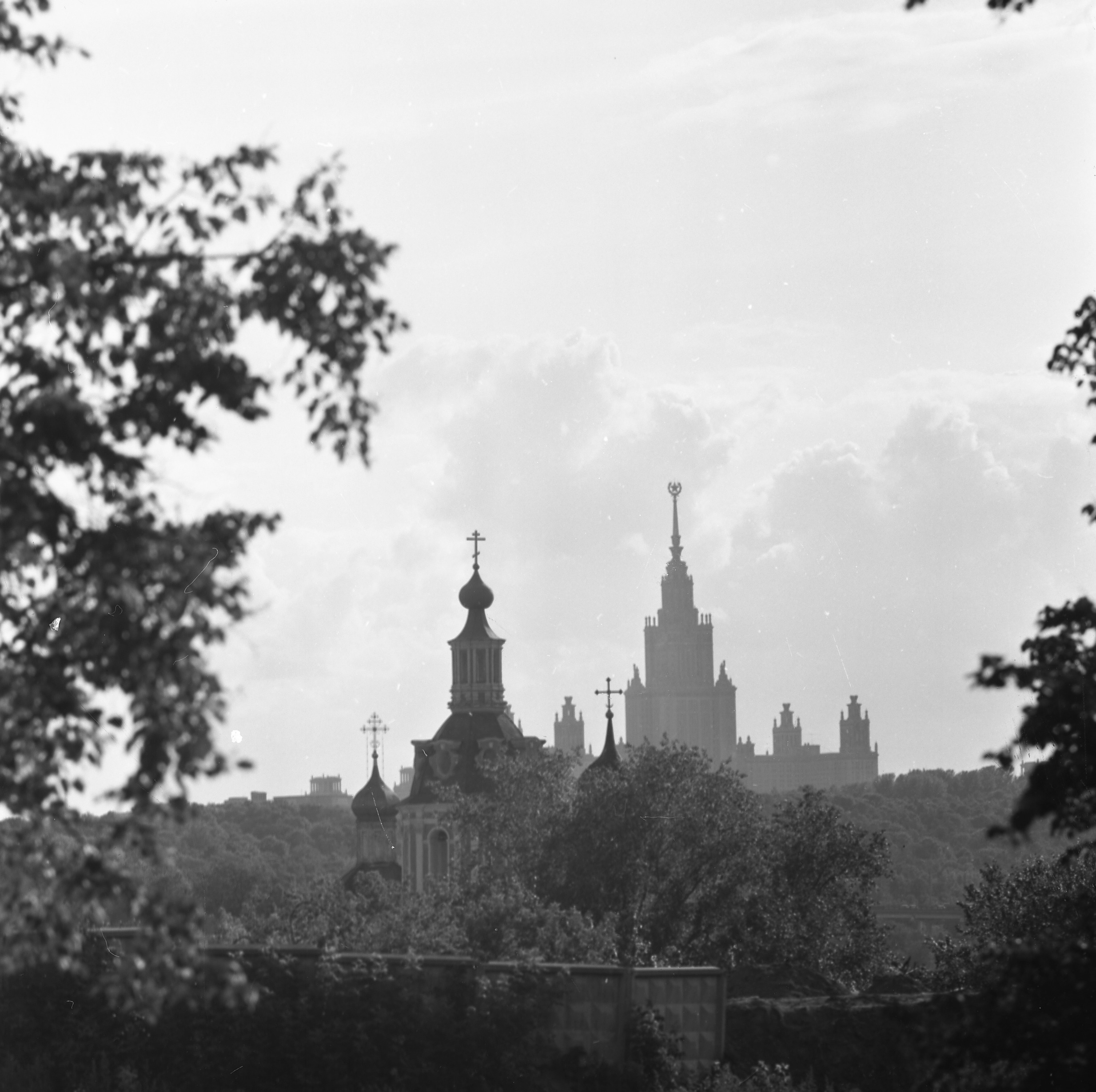 Томбак Борис Шаевич. Вид на Андреевский монастырь и МГУ. Негатив. 1980-е гг. Фотопленка ч/б негативная, негатив