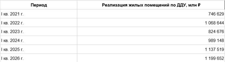 При этом сохранявшийся в самом начале 2026 года спрос обеспечил девелоперам по итогам I квартала 2026 года рекордную выручку относительно аналогичных периодов прошлых лет. Так, относительно I квартала 2025 года выручка выросла на 5,5%.